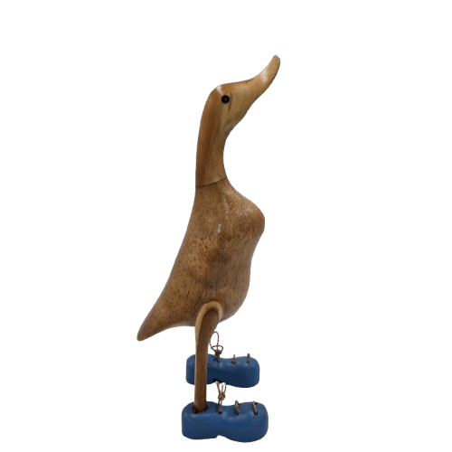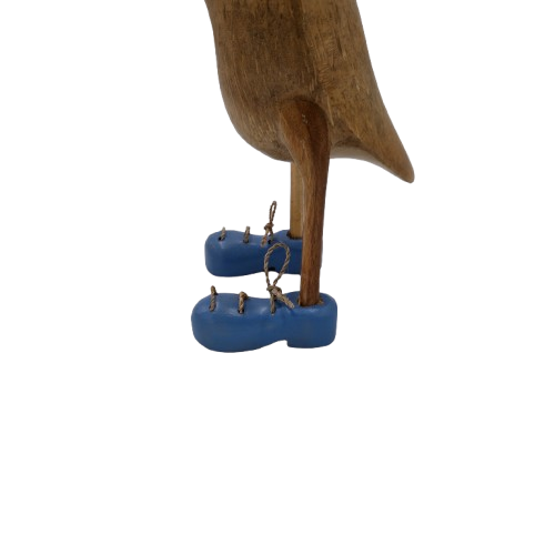 Baltic Large to imponująca, ręcznie wykonana kaczka w wyjątkowo wyrazistych niebieskich butach, która od pierwszego spojrzenia przyciąga uwagę stylową sylwetką z naturalnego drewna i nawiązuje do spokojnych, szerokich akwenów Morza Bałtyckiego. Jej forma zachwyca harmonią oraz zmysłową prostotą – w każdym egzemplarzu, dzięki pracy balijskiego rzemieślnika, kryje się inny układ słojów i subtelne różnice w detalu.