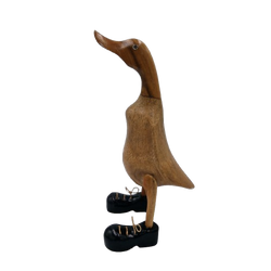 Noir Mini to ręcznie wyrzeźbiona, drewniana kaczka w rozmiarze Small, która uwodzi urokiem i zaskakuje czarnymi butami. Figurka symbolizuje nutę elegancji w codzienności – czarne obuwie dodaje jej stylu, a precyzyjnie wykonane detale przywołują ciepło balijskiego rękodzieła. Idealna jako oryginalny akcent do niewielkich przestrzeni lub miły upominek dla osoby ceniącej nietuzinkowe dekoracje. 🎁