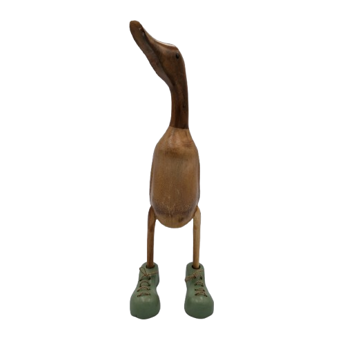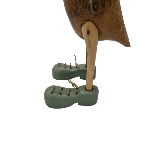 Pistachio Medium to średnia balijska kaczka, której buty w barwie miękkiej pistacji przywodzą na myśl świeżość natury i wiosenną radość. Ręcznie wykonana – każda sztuka różni się rysunkiem słojów, detalami oraz malowaniem, co czyni ją absolutnie niepowtarzalną!