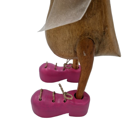 Rosie Large to duża, efektowna kaczka z Bali, która wyróżnia się pięknymi różowymi butami, misternie rzeźbioną sylwetką oraz wyrazistą białą kokardą. Każda Rosie Large powstaje jako jedyny, niepowtarzalny egzemplarz – w rękach balijskiego mistrza nabiera własnych cech, układu słojów i detali wykończenia, dlatego staje się prawdziwą królową wśród dekoracji.