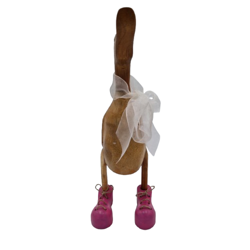 Rosie Medium to średniej wielkości figurka, która łączy w sobie balijskie rzemiosło, radosny odcień różowych butów oraz dziewczęcy akcent w postaci delikatnej kokardy. Absolutnie każdy egzemplarz jest unikatowy – powstały pod okiem balijskiego artysty, z własnym układem drewna, stylowym wykończeniem i niepowtarzalnym charakterem.
